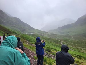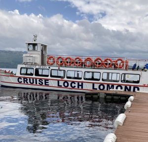 Day 3, June 13:  After breakfast, we boarded our bus, headed for the “bonnie, bonnie bank of Loch Lomond”.  Being Scotland, of course it was chilly, but we didn’t let that bother us as we joined together on the top deck and sang “Loch Lomond” ON Loch Lomond!  The video is pretty poor quality and mostly you hear the sound of the wind, but I think you’ll get a sense of what it was like!