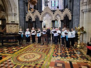 In June, 2025, a group from One World Singers (plus a few more!) traveled to Scotland and Ireland for a tour which included singing four concerts.  A wonderful time was had by all!  Below is a brief description of the trip, plus a few pictures.  You can see a slideshow of more pictures taken by various members of our group here.  (Tour participants: If you want copies of any of these pictures please contact Sara!)