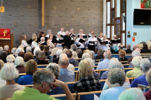 Our concert with the Helensburgh Oratorio Choir was just delightful!  After a light snack, provided by them, we rehearsed, then enjoyed their performance, followed by ours. The last piece was when both choirs joined together to sing – you guessed it – Loch Lomond!