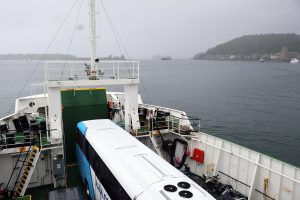 Day 5, June 15: The plan was to take a ferry ride to the Isle of Mull, but due to miscommunication, the trip was delayed an hour!  Of course, one must always be prepared for glitches when traveling, so the group was ready to go when the big bus finally made it onto the ferry!